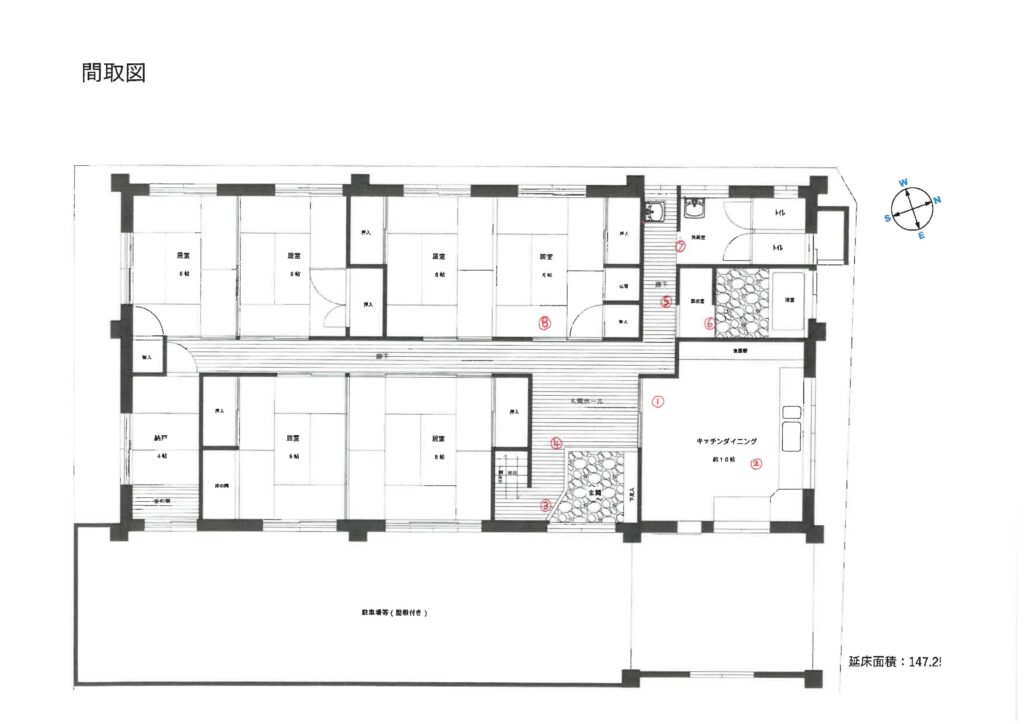 写真の番号は、間取り図にある番号の場所から撮影したものです。間取り図と照合しながらご確認ください。