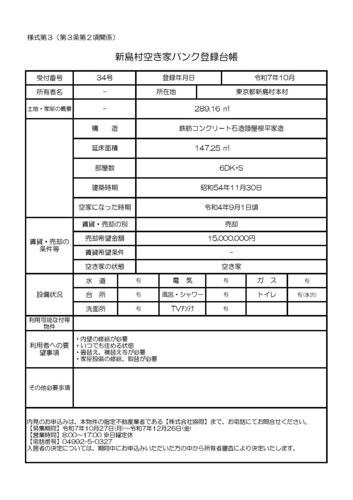 【新島】空き家バンク新島34号